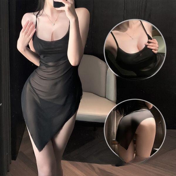 ・商品の状態 : 新品・カラー (ブラック)・商品内容 キャミソールミニドレス(Tバック付き) ×1・サイズ フリーサイズ・商品の素材 : ポリエステル、他(商品説明) 大人の女性の色気を引き出す、シースルー素材のキャミソールミニドレス。 胸元を美しく見せる緩やかなカッティングと、華奢なストラップがデコルテを上品に飾ります。 ボディラインに沿うタイトなシルエットから、スカート部分にかけては透け感のあるシースルー素材を使用。歩くたびに揺れるアシンメトリーなヘムラインが、見る人を惹きつけます。 この一枚を身につければ、普段とは違う特別な自分を演出できます。パートナーとの大切な夜や、非日常を味わいたい時に最適なアイテムです
